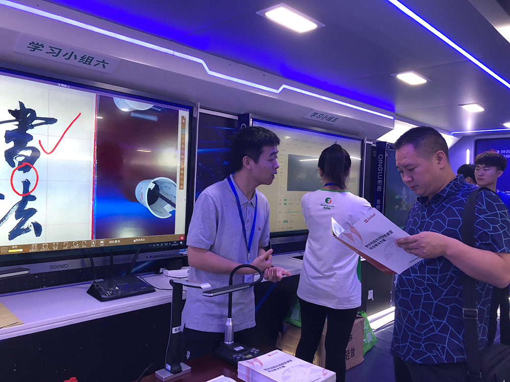 “創(chuàng)新公益行”大篷車首站在楊凌邰城實(shí)驗(yàn)學(xué)校正式亮相,啟動(dòng)儀式結(jié)束后,各級領(lǐng)導(dǎo)、師生紛紛走進(jìn)車內(nèi)進(jìn)行參觀體驗(yàn),吉星為大家?guī)碜钚碌闹腔坌@全互動(dòng)系統(tǒng)、未來智慧書法教室等創(chuàng)新教育信息化應(yīng)用,贏得了前來參加活動(dòng)的各位領(lǐng)導(dǎo)和師生的認(rèn)可。