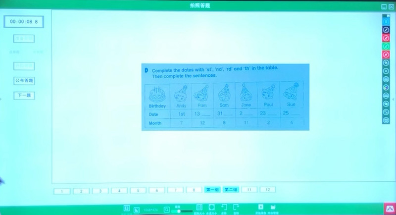老師可通過投屏搶答、課堂搶答功能,同學們開始搶答,最先搶到的同學的桌面畫面會顯示在大屏