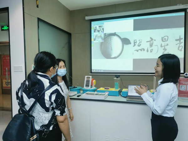 在現(xiàn)場,工作人員還向現(xiàn)場嘉賓展示了與550多公里以外的廣州連線的具體情況。雖然相隔甚遠,但主課堂和分課堂可以共享同樣的課程內容。