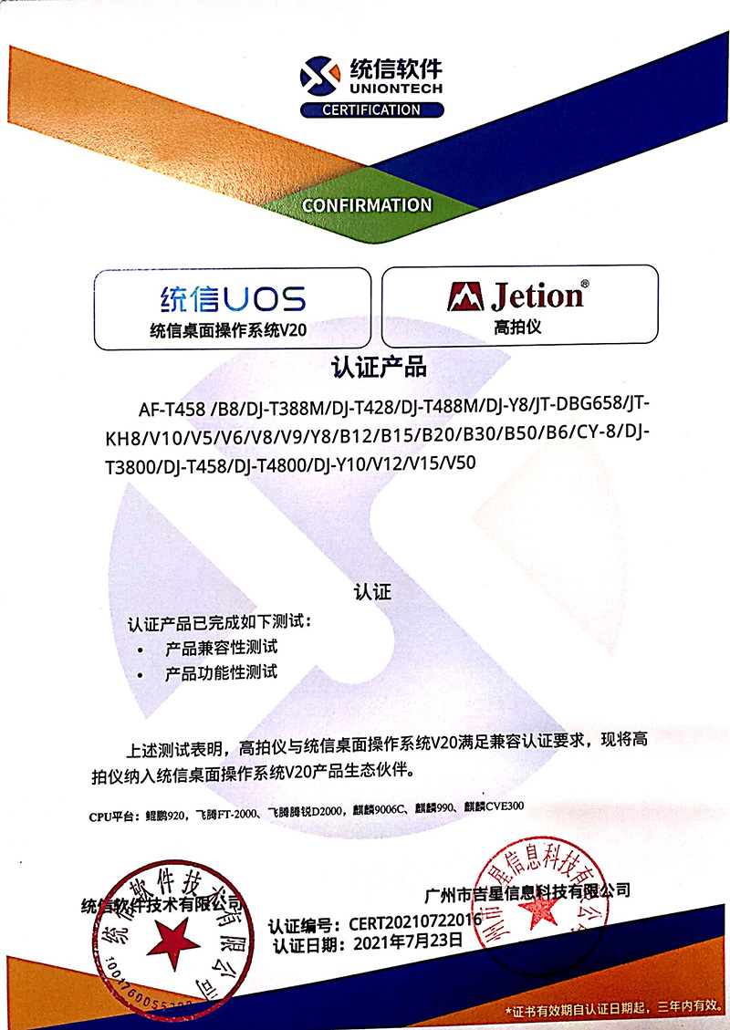 日前,由吉星自主研發(fā)的高拍儀與統(tǒng)信UOS桌面操作系統(tǒng)V20完成產(chǎn)品兼容性測試以及產(chǎn)品功能性測試。