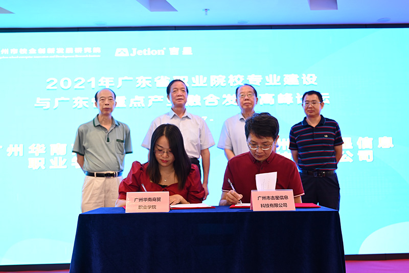 在論壇現(xiàn)場,吉星分別與廣州市白云工商技師學院、廣州華南商貿(mào)職業(yè)學院簽訂校企合作協(xié)議,進一步推動校企合作。