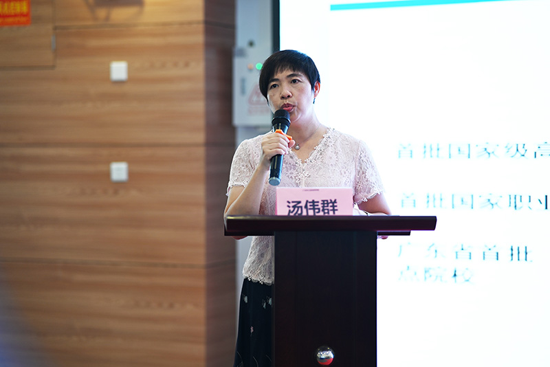 學校分享環(huán)節(jié),廣州市工貿(mào)技師學院黨委書記湯偉群帶來了主題為以雙元抓手促進產(chǎn)教融合的分享。