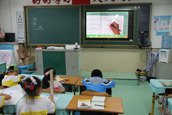 首先,在課程開始前,老師通過吉星無線視頻展臺將自己書寫或書本上面的示范樣本連接到黑板上,進行詳細的講解,,讓同學們能夠清晰的了解到書寫的要點和文字的詳細構造。