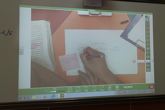 老師將吉星展臺與電子白板和投影儀相連接,無論教材、實物還是動態操作,都可以通過展臺展示到大屏幕上,方便、快捷、直觀。