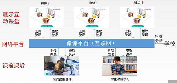 基于視頻展示互動課堂的微課學習平臺,是一個以微課為媒介、線上線下相結合的校園微課互動學習平臺。基于該平臺,老師可上傳錄制好的微課(關鍵知識點講解、典型學生作業講解、學生典型問題講解等),供學生觀看學習;學生可在課后通過微課平臺預習和復習相關知識點,也可自制微課,供其它同學和老師觀看;學校可通過該平臺,及時了解各班級教學質量及學習情況。