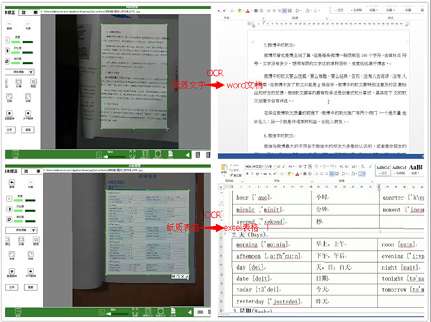 吉星展臺的文字識別功能,可將教材、習題、試卷、課外讀物等紙質文檔上的文字通過拍攝,轉換成可編輯的文檔,這個功能有利于教師將固定的教學素材進行二次編輯修改,形成自己的教學材料。目前吉星引進的是德國最先進的ABBY文字識別技術,識別率高,除了文字識別外,還可以進行表格識別,直接轉換成EXCEL等格式,大大提高教師的備課、辦公效率。