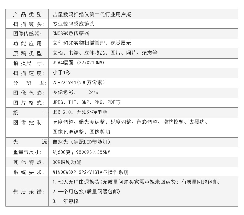 | 圖片格式 | JPEG、TIF、BMP |
